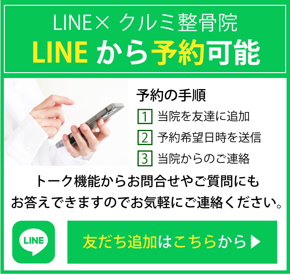 改善を諦めたり1人で悩んだりせず、どうぞお気軽にクルミ整骨院にご相談ください。